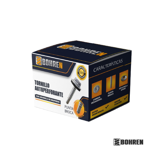 El tornillo autoperforante con punta broca y arandela de neopreno es un elemento de fijación diseñado para facilitar la instalación en materiales duros, como metal. Su punta broca permite perforar el material mientras se atornilla, eliminando la necesidad de hacer un agujero previo. La presencia de la arandela de neopreno añade un elemento de sellado y proporciona resistencia a la entrada de agua o polvo.