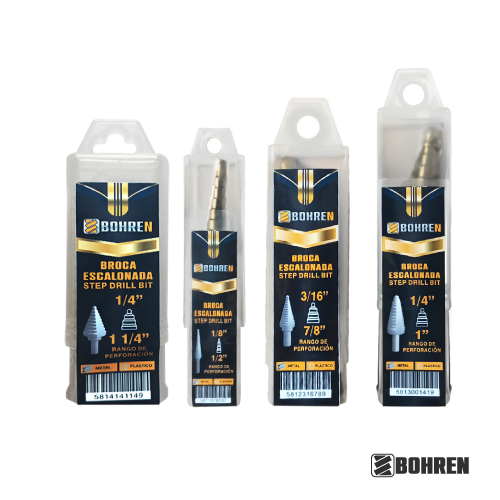 La broca escalonada es una herramienta versátil diseñada para realizar perforaciones con diámetros variables en una sola operación. Su peculiar diseño presenta varios niveles de corte progresivos a lo largo de la longitud de la broca, lo que permite crear agujeros de diferentes tamaños sin cambiar la herramienta. Estas brocas son ideales para trabajos que requieren perforaciones precisas en láminas delgadas de metal, plástico o madera, y son ampliamente utilizadas en aplicaciones como la instalación de componentes eléctricos, fontanería y carpintería. La broca escalonada simplifica el proceso de perforación, ahorrando tiempo y esfuerzo al proporcionar una solución eficiente para crear agujeros de diámetros variados de manera rápida y precisa.
